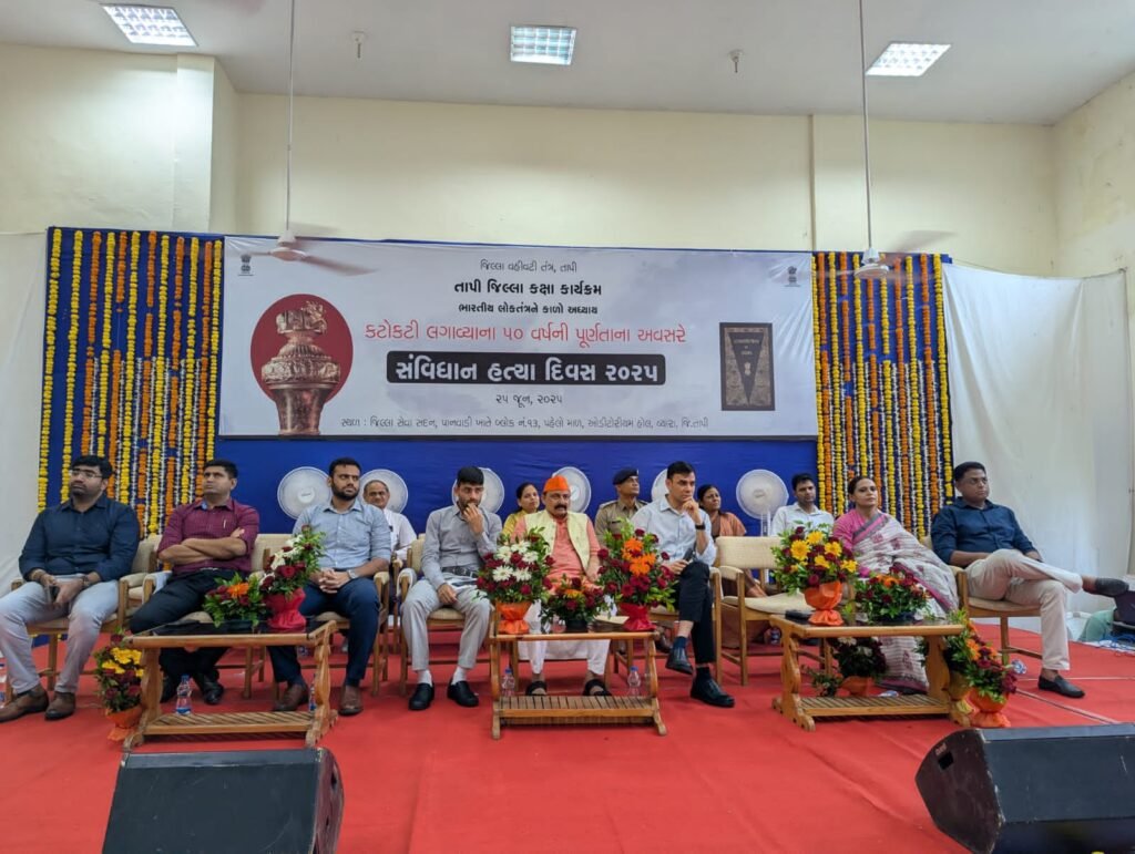 (પ્રતિનિધિ દ્વારા, વ્યારા) : તા. ૨૫ : આજથી બરાબર ૫૦ વર્ષ પહેલા દેશમાં લદાયેલી કટોકટીને યાદ અપાવવા રાજ્યભરમાં ઉજવાઈ રહેલા ‘સંવિધાન હત્યા દિવસ’ની ઉજવણી અંતર્ગત જિલ્લા પંચાયત ઓડીટોરીયમ વ્યારા ખાતે આજે સંવિધાન હત્યા દિવસ અંતર્ગત કાર્યક્રમ યોજાયો હતો. લોકશાહીના મુલ્યોના જતન દર્શાવતા આ કાર્યક્રમમાં ધારાસભ્ય શ્રી મોહનભાઈ ઢોડીયા અને શ્રી મોહનભાઈ કોકણી ઉપસ્થિત રહ્યા હતા.