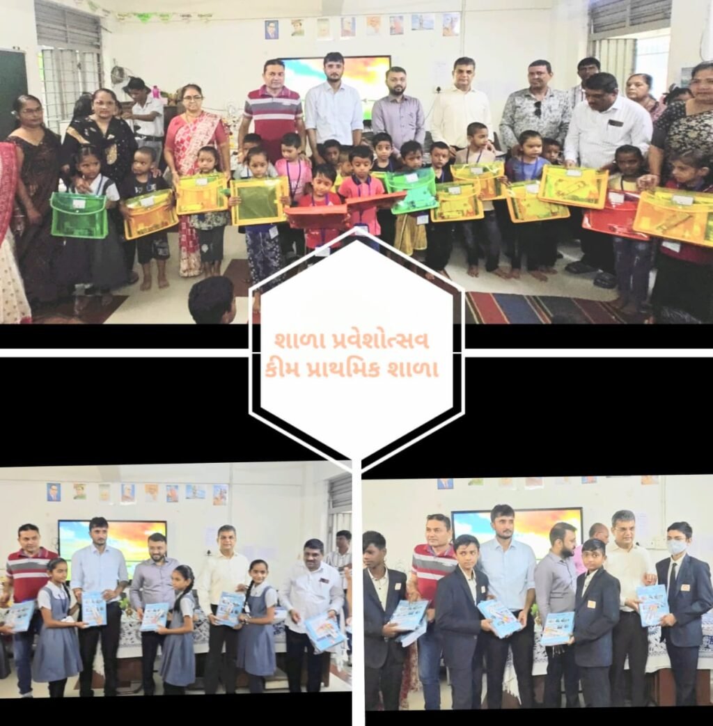 (પ્રતિનિધિ દ્વારા, વ્યારા) : શાળા પ્રવેશોત્સવ અને કન્યા કેળવણી મહોત્સવની ઉજવણી હેઠળ ઓલપાડનાં કીમ નગર ખાતે વિકાસ કમિશનર હિતેશ કોયાએ કીમ પ્રાથમિક શાળા ખાતે આંગણવાડીમાં કુલ ૧૯, બાલવાટિકામાં કુલ ૫૨ અને ધોરણ ૧ માં ૫ ભૂલકાઓને શાળા પ્રવેશ કરાવ્યો હતો. જ્યારે પી.કે.દેસાઈ વિદ્યાલયમાં ધોરણ ૯ માં ૧૮૨ વિદ્યાર્થીઓ અને ધોરણ ૧૧ માં ૭૯ વિદ્યાર્થીઓને શાળા પ્રવેશ કરાવ્યો હતો.