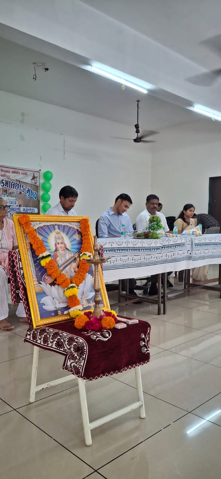 (પ્રતિનિધિ દ્વારા, વ્યારા) : તા.૨૭ જુન. શાળા પ્રવેશોત્સવના બીજા દિવસે જિલ્લા વિકાસ અધિકારીશ્રી રામનિવાસ બુગાલીયાએ આજે તા.૨૭ જુનના રોજ કમલછોડ પ્રાથમિક શાળામાં ભૂલકાઓને પ્રવેશ કરાવ્યો હતો. ગત વર્ષે પ્રથમ નંબર મેળવ્યો હોય તેવા પ્રતિભાશાળી વિદ્યાર્થીઓ અને NNMS, જ્ઞાન સાધનામાં સ્કોલરશીપ મેળવનાર તથા શાળામાં ગયા વર્ષે ૧૦૦% હાજરી આપી હોય તેવા વિદ્યાર્થીઓને સન્માનિત કરવામાં આવ્યા હતા. વિદ્યાર્થીઓએ સરકારની વિવિધ યોજનાઓ, વ્યસનમુક્તિ તથા માર્ગ સલામતી વિશે શાળામાં વકતવ્ય આપવામાં આવ્યું હતું.