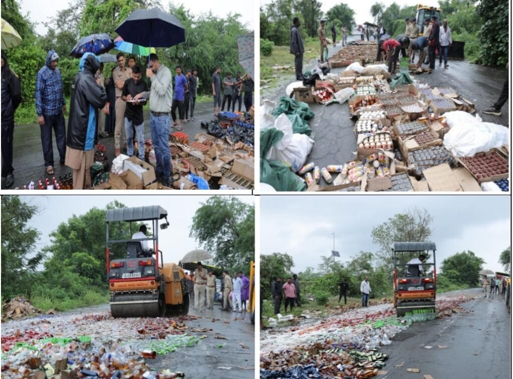 તાપી જીલ્લાનાં છ પોલીસ સ્ટેશનોમાં ઝડપાયેલ કુલ 46 લાખથી વધુનાં વિદેશી દારુનાં મુદ્દામાલ ઉપર રોલર ફેરવી નાશ કરાયો