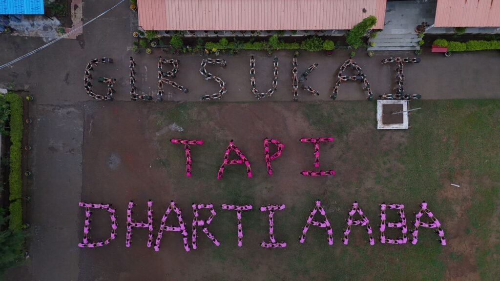 નિવાસી કન્યા શાળા ઉકાઈની વિદ્યાર્થીનીઓએ ‘ધરતી આબા’નું માનવ ચિત્ર બનાવી જનજાગૃતિનો સંદેશ આપ્યો