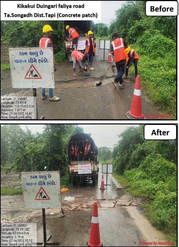 સોનગઢના વડપાડા-ઉમરદા રોડ અને કિકાકુઇ ગ્રામ્ય વિસ્તારમાં રોડ મરામત કામગીરી હાથ ધરાઈ