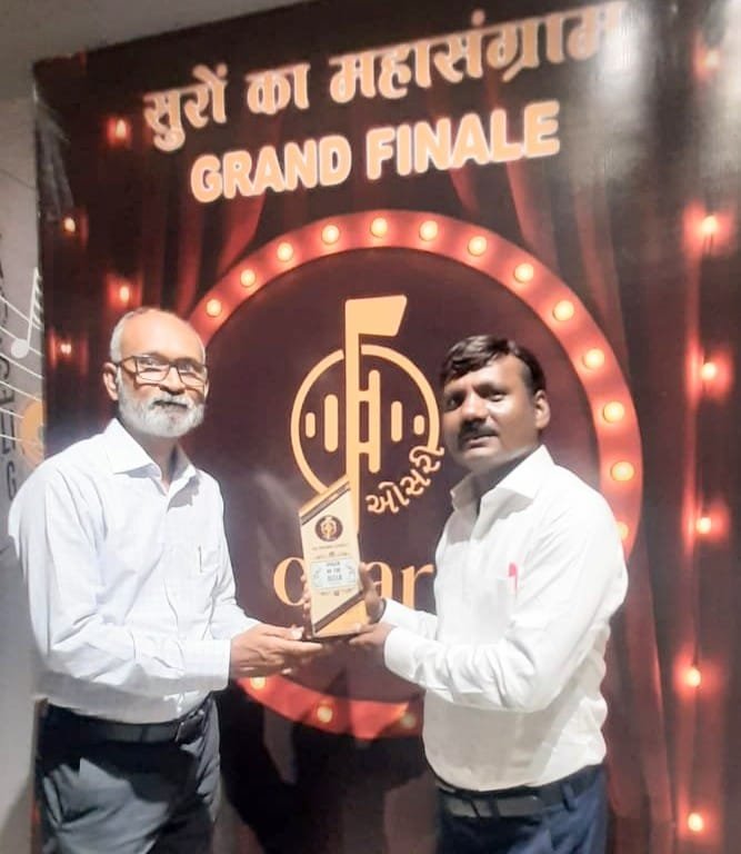 (પ્રતિનિધિ દ્વારા, ઓલપાડ ) :  સુરત શહેરનાં પાલ-અડાજણનાં ગૌરવપથ સ્થિત ઓસરી સ્ટુડિયો ખાતે સૂર પ્રીમિયર લીગ સીઝન-3 અંતર્ગત ‘સૂરો કા મહાસંગ્રામ’ નામક કાર્યક્રમ યોજવામાં આવ્યો હતો. જેમાં ઓલપાડ તાલુકાની જિલ્લા પંચાયત શિક્ષણ સમિતિ સંચાલિત વડોલી પ્રાથમિક શાળામાં ઉપશિક્ષક તરીકે ફરજ બજાવતાં ભરત સોલંકીએ સહર્ષ ભાગ લીધો હતો. અત્રે તેમણે બેસ્ટ પર્ફોમન્સ રજૂ કરી ‘સિંગર ઓફ ધ મેચ’ નો ખિતાબ હાંસલ કર્યો હતો. આ પ્રસંગે તેમને ઓસરી સ્ટુડિયોનાં સંજય પટેલનાં હસ્તે ટ્રોફી તથા પ્રમાણપત્ર એનાયત કરવામાં આવ્યા હતાં.