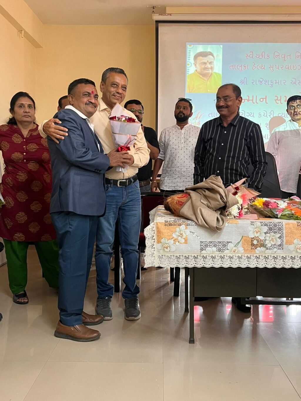(પ્રતિનિધિ દ્વારા, વ્યારા) : આજ રોજ તારીખ ૨/૮/૨૫ ના શનિવાર ના રોજ બપોરે ૨ વાગ્યે તાલુકા આરોગ્ય કચેરી વ્યારા જિ તાપી ખાતે શ્રી રાજેશ સાકરલાલ શેઠ તાલુકા હેલ્થ સુપરવાઇઝર વ્યારાનો સ્વૈચ્છિક નિવૃત્તિ લઈને ” વિદાય સમારંભ’ યોજવા માં આવ્યો હતો.