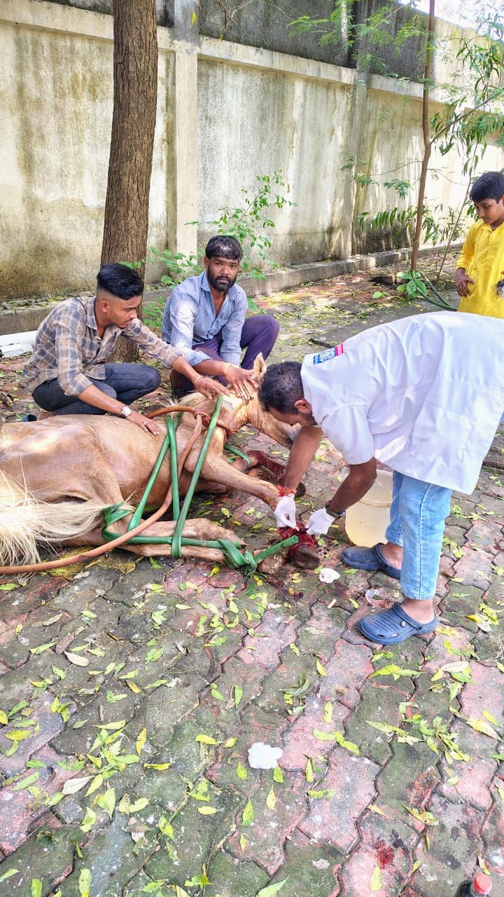 (પ્રતિનિધિ દ્વારા, વ્યારા) : તાપી જિલ્લાના મુખ્ય મથક વ્યારામાં આજે બીન વારસી ખચ્ચરનાં પગ પર ઘણા સમયથી દોરી બાંધી દેવામાં આવી હતી. દોરીના લીધે આગળના પગે મોટો ઘા અને ભારે લોહિનો સ્ત્રાવ થઈ રહ્યો હતો. જેના લીધે ખચ્ચરને ખૂબ જ પીડા અને ચાલવામાં તકલીફ થઈ રહી હતી. સ્થાનિકો દ્વારા ખચ્ચરને આ હાલતમાં જોતા 1962 એનીમલ હેલ્પલાઇન પર કોલ કર્યો હતો વ્યારાની કરુણા એનિમલ એમ્બ્યુલન્સની ટીમ ડો. કાર્તિક અને પાયલોટ કમ ડ્રેસર દિગંતભાઈ તાત્કાલિક ઘટના સ્થળ પર પહોંચી ગયા હતા. અને પશુને સ્થાનિકો દ્વારા રેસ્ક્યુ કરી ૧૯૬૨ ટીમ દ્વારા પગ પર બાંધેલી દોરીને કાપી નાખી અને ઘાને ડ્રેસિંગ કરીને સારવાર આપી પીડામાંથી મુક્ત કરવામાં આવ્યો હતો.