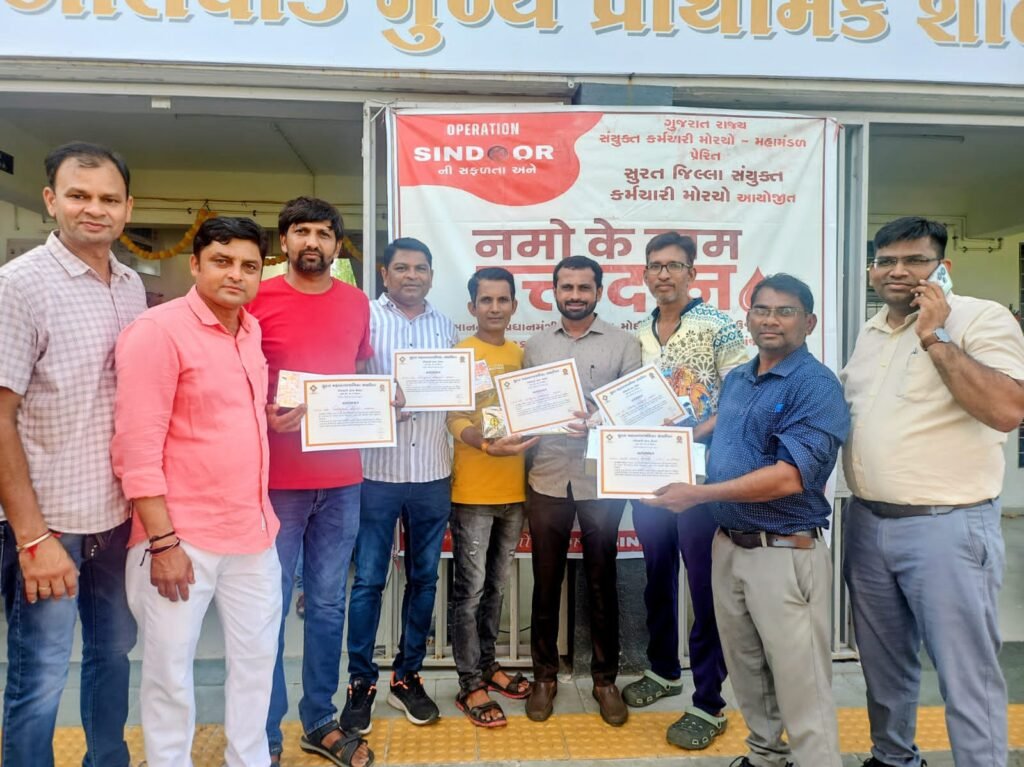 નમો કે નામ રક્તદાન બેનર હેઠળ યોજાયેલ મહા રક્તદાન કેમ્પને ઓલપાડ તાલુકામાં અભૂતપૂર્વ સફળતા સાંપડી