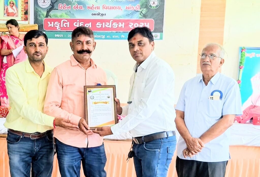 ભાંડુત ગામનાં વતની ધર્મેન્દ્ર પટેલને પ્રકૃતિ પ્રેમી એવોર્ડ અર્પણ