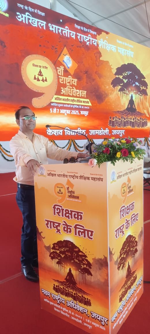 (પ્રતિનિધિ દ્વારા, ) : અખિલ ભારતીય રાષ્ટ્રીય શૈક્ષીક મહાસંઘ દ્વારા ત્રિદિવસીય 9માં રાષ્ટ્રીય અધિવેશન જયપુર ખાતે યોજાયું હતું. જેમાં સમગ્ર દેશના તમામ જિલ્લામાં કાર્યરત શૈક્ષીક મહાસંઘ ના જુદા જુદા નવ સંવર્ગના અધ્યક્ષ અને મહામંત્રીની ઉપસ્થિતિ સાથે અન્ય હોદ્દેદારો એમ કુલ 3200 શૈક્ષિક મહાસંઘના કર્મઠ કાર્યકર્તા એવમ સભ્યોની હાજરીમાં શિક્ષક રાષ્ટ્રના વિકાસ માટેના વિષય સાથે સામાન્ય સભા સાથે જુદા જુદા 12 સત્રોમાં શિક્ષા, શિક્ષણ, રાષ્ટ્રીય સુરક્ષા, નવી શિક્ષણ નીતિ 2020, કર્મયોગીતા, ધર્મ સાથે વિજ્ઞાન, નવી આર્થિક નીતિ, પર્યાવરણ બચાવો, ગ્રીન એનર્જી, સમાજ નવ રચના, સ્કીલ india, સ્ટાર્ટ up ભારત, સ્વદેશી, આત્મનિર્ભરતા, નેશન first જેવા વિષયો પરત્વે દેશના નિષ્ણાતો દ્વારા મનોમંથન અને વિચાર ગોષ્ઠિ કરી સૌને નવીન ઊર્જા આપી હતી. વ્યક્તિ વિકાસ સાથે રાષ્ટ્ર હિતની વાત કરવામાં આવી. જન જનનું કલ્યાણ માટે પ્રથમ શિક્ષણ અને તેના જવાબદાર વાહક શિક્ષક, આચર્ય એજ સમાજ ઘડતર, રાષ્ટ્રહિત સહિત સંસ્કારોનું સિંચન, આંતર શક્તિ દૃઢતા, માનવિય અભિગમો, વર્તન, વયવહાર અને આરોગ્ય વિષયકના પાઠ આપી એક ભારત શ્રેષ્ઠ ભારતની પરિકલ્પના સાર્થક કરી શકે. તાપી જિલ્લાના આચાર્ય સંવર્ગ અધ્યક્ષ કેતન શાહ, પ્રાથમિક અધ્યક્ષ ભદ્રેશ પ્રજાપતિ સાથે અન્યો જયપુર ખાતે ત્રિદિવસીય રાષ્ટ્રીય અધિવેશનમાં હાજરી આપી હતી. આવનારા દિવસોમાં જિલ્લાના 1500 શૈક્ષિક મહાસંઘના તમામ સભ્યોને મળેલ જયપુર અધિવેશનનું ભાથુ આપશે અને સૌ સભ્યોને સમાજ ઘડતર, રાષ્ટ્ર હિત, રાષ્ટ્ર સુરક્ષાના સંદર્ભગ્રંથ આપી કાર્યાન્વિત કરાવશે.