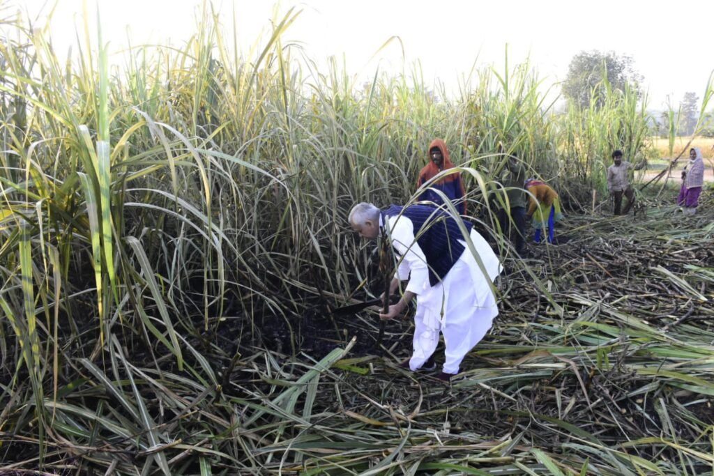 રાજ્યપાલ શ્રી આચાર્ય દેવવ્રતજીએ ખેડૂતો સાથે શેરડીની કાપણી કરી