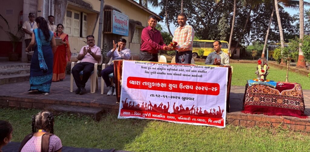(પ્રતિનિધિ દ્વારા, વ્યારા) : શ્રી અરુણા અનિલ વ્યારા પ્રદેશ વિકાસ પ્રતિષ્ઠાન સંચાલિત વિદ્યા ગુર્જરી માધ્યમિક શાળામાં તા. 12/11/25 ને બુધવારના રોજ કમિશનર શ્રી યુવક સેવા અને સાંસ્કૃતિક પ્રવુત્તિઓ વિભાગ,ગાંધીનગર આયોજિત જિલ્લા યુવા અને સાંસ્કૃતિક પ્રવૃતિઓની કચેરી, તાપી અને વિદ્યા ગુર્જરી માધ્યમિક શાળા, પનિયારી વ્યારાના સહયોગથી વ્યારા તાલુકાકક્ષા યુવા ઉત્સવ 2025-26નું આયોજન કરવામાં આવ્યું.