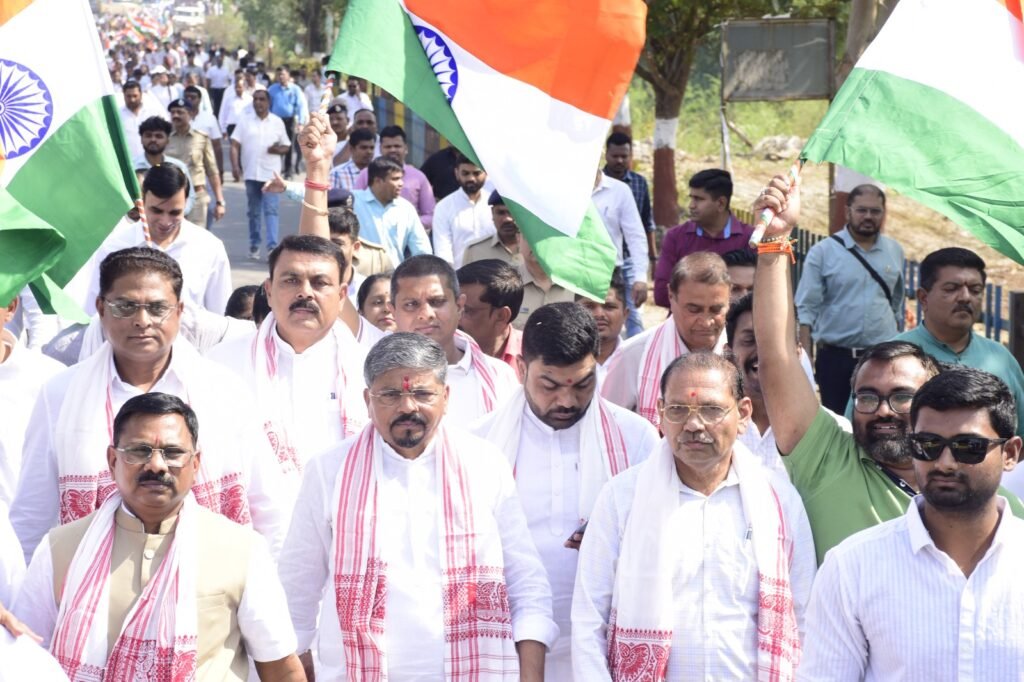 (પ્રતિનિધિ દ્વારા, વ્યારા) : તા. ૧૯: રાષ્ટ્રની એકતા અને અખંડિતતાના શિલ્પી, લોખંડી પુરુષ સરદાર વલ્લભભાઈ પટેલની ૧૫૦મી જન્મજયંતીની ગૌરવપૂર્ણ ઉજવણીના ભાગરૂપે, આજે તાપી જિલ્લાના વ્યારા ખાતે બિરસામુંડા સર્કલ પર ભવ્ય ‘યુનિટી માર્ચ’ પદયાત્રાનું આયોજન કરવામાં આવ્યું હતું. ભારત સરકારના યુવા કાર્યક્રમ અને ખેલ મંત્રાલય તેમજ ગુજરાત સરકારના સંયુક્ત ઉપક્રમે યોજાયેલી આ યાત્રામાં “એક ભારત, આત્મનિર્ભર ભારત” ના મંત્રને સાકાર કરવાનો દ્રઢ સંકલ્પ વ્યક્ત કરવામાં આવ્યો હતો.વ્યારાના ઐતિહાસિક બીરસા મુંડા સર્કલ ખાતેથી આ ‘યુનિટી માર્ચ’નો પ્રારંભ થયો હતો. આ પ્રસંગે તાપી જિલ્લાના પ્રભારી મંત્રી અને કેબિનેટ મંત્રી શ્રી નરેશભાઈ પટેલ, બારડોલી લોકસભાના સાંસદ શ્રી પ્રભુ વસાવા, ધારાસભ્ય શ્રી મોહન કોકણી, કલેક્ટર ડૉ. વિપિન ગર્ગ, જિલ્લા વિકાસ અધિકારી શ્રી રામનિવાસ બુગાલિયા, અને પોલીસ અધિક્ષક શ્રી જશુભાઈ દેસાઈ તેમજ જિલ્લા પંચાયત પ્રમુખ શ્રી જાલમસિંહ વસાવા, નગરપાલિકા પ્રમુખ શ્રી રિતેશ ઉપાધ્યાય અને સ્થાનિક અગ્રણી શ્રી સૂરજ વસાવા સહિતના મહાનુભાવોએ સંયુક્તપણે લીલી ઝંડી આપી પદયાત્રાને પ્રસ્થાન કરાવ્યું હતું.