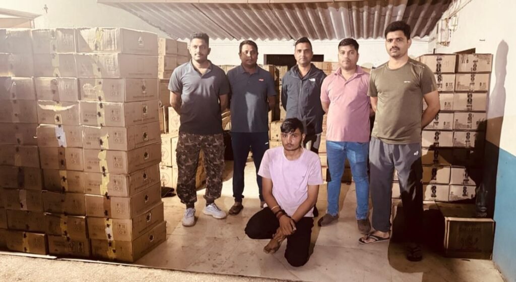 (પ્રતિનિધિ દ્વારા, વ્યારા) : આજરોજ શ્રી ડી.એસ. ગોહિલ, પોલીસ ઇન્સ્પેકટર, પો.ઇન્સ.શ્રી એન.જી. પાંચાણી, એલ.સી.બી. જી.તાપીની સીધી સુચના અને માર્ગદર્શન હેઠળ પો.સ.ઈ.શ્રી એન.એસ. વસાવા, પેરોલ ફર્લો સ્કોર્ડ, તાપી તથા સ્ટાફના પોલીસ માણસોએ પોતાના અંગત બાતમીદારો રોકેલ હોય આજરોજ પોલીસ માણસો સાથે નાઇટ રાઉન્ટ પેટ્રોલીંગમાં હતા દરમ્યાન સાથેના એ.એસ.આઇ. બીપીનભાઈ રમેશભાઈ તથા હે.કો. લેબજીભાઇ પરબતજીને ખાનગી રાહે સંયુક્ત બાતમી મળેલ કે, “મહારાષ્ટ્ર રાજ્યના નવાપુર તરફથી એક આઇસર ટેમ્પો નં. GJ-23-AT-9598 નીમાં પાછળના ભાગે એક સિલ્વર કલરનુ લોખંડ/પતરાનુ બોક્ષમાં ઇગ્લીશ દારૂનો જથ્થો ભરી વ્યારા તરફ આવે છે” જે બાતમી આધારે સોનગઢ તાલુકાના માંડળ ટોલનાકા ખાતેથી ને.હા.ન.૫૩ સોનગઢ થી વ્યારા તરફ જતા રોડ ઉપર સોનગઢ તરફથી આવતા વાહનોના રજીસ્ટ્રેશન નંબર આધારે વોચમાં હતા. દરમ્યાન સોનગઢ તરફથી બાતમી હકીકત મુજબનો રજીસ્ટ્રેશન નંબરવાળો એક આઇસર ટેમ્પો જેના પાછળની બોડીના ભાગે એક સિલ્વર કલરનુ લોખંડ/પતરાનુ બોક્ષ મુકેલ હોય તે આઇસર ટેમ્પો આવતા સાથેના પોલીસ માણસો દ્વારા આઇસર ટેમ્પો ઉભો રખાવી ટેમ્પામાં ટેમ્પો ચાલક બેસેલ હોય જેને આપે નીચે ઉતારી ટેમ્પામાં મુકેલ સિલ્વર કલરનુ લોખંડ/પતરાનુ બોક્ષમાં શુ ભરેલ છે. તે બાબતે પુછપરછ કરતા વાહન ચાલકે ટેમ્પામાં મુકેલ બોક્ષમાં કંઇ ભરેલ નથી તે વોટર કુલીંગ મશીન છે તેમ જણાવી એક બીલ્ટ્રી અને ટેક્ષ ઇન્વોઇસની નકલ રજુ કરેલ જે જોયેલ તો અમર ગુડસ ટ્રાંસપોર્ટ કું.ની બીલ્ટ્રી જેમા સામાનની વિગતમાં વોટર કુલીંગ મશીન લખેલ હોય જે નવાપુર મહારાષ્ટ્ર થી રાજકોટ જવા બાબતેની હકીકત લખેલ હોય બાતમી હકીકત બાબતે વધુ ખાત્રી તપાસ કરવાની હોય આ કામે આઇસર ટેમ્પાના ચાલકની વધુ પુછપરછ કરતા આઇસર ટેમ્પામાં મુકેલ બોક્ષમાં ઇગ્લીશ દારૂનો જથ્થો ભરેલ હોવાની કબુલાત કરતા હોય આરોપી- અજયકુમાર પતારામ થોરી ઉ.વ.૨૧ રહે.જગરામ કી ધાણી ગામ-તા.નોખડા થાના.આર.જી.ટી.નગર જી.બાડમેર રાજસ્થાન પોતાના કબજાનો એક મરૂન કલરનો આઇસર ટેમ્પો જેનો રજીસ્ટ્રેશન નંબર GJ-23-AT-9598 જેની કિ.રૂ.૭,૦૦,૦૦૦/- નીમાં વગર પાસ પરમીટે ભારતીય બનાવટની ઇંગ્લીશ દારૂની બાટલી/ટીન નંગ- ૨૦૪૯૬, કુલ કિંમત રૂ! ૭૧,૬૮,૦૮૦/- નો પ્રોહી. મુદ્દામાલ તથા એક નંગ મોબાઇલ કિ.રૂ.૫૦૦૦/- તથા રોકડા રૂપીયા ૮૦૦0/- તથા આઇસર ટેમ્પામાં પ્રોહી જથ્થો મુકેલ તે લોખંડ/પતરાનુ લંબચોરસ બોક્ષ જેની કિ.રૂ.આશરે ૩,૦૦,000/- તથા બીલ્ટ્રી અને ટેક્ષ ઇન્વોઇસની નકલ પાના નંગ-૨ કિ.રૂ.૦૦/૦૦ મળી કુલ્લે ૮૧,૮૧,૦૮૦/- નો મુદ્દામાલ સાથે પકડી પાડી અન્ય એક આરોપીઓને વોન્ટેડ જાહેર કરી ઉપરોકત આરોપી વિરૂધ્ધમાં કાયદેસરની કાર્યવાહી કરી આગળની વધુ કાર્યવાહી સારૂ સોનગઢ પોલીસ સ્ટેશનને સોંપેલ છે.