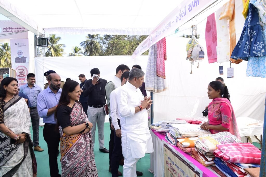મંત્રીશ્રીએ સખીમંડળની બહેનો દ્વારા નિર્મિત હસ્તકલા અને ખાદ્ય ચીજવસ્તુઓના ઉત્કૃષ્ટ બ્રાન્ડિંગ તેમજ ગુણવત્તા પર વિશેષ ભાર મૂકી તેમને પ્રોત્સાહિત કર્યા હતા