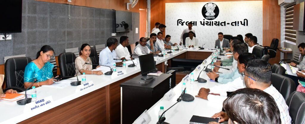 (પ્રતિનિધિ દ્વારા, વ્યારા) : તાપી જિલ્લા પંચાયત પ્રમુખ શ્રી જાલમસિંહ વસાવાના અધ્યક્ષસ્થાને જિલ્લા પંચાયત કચેરીના કોન્ફરન્સ હોલ ખાતે શુક્રવારે સામાન્ય સભાની બેઠક યોજાઈ હતી. આ બેઠકમાં જિલ્લાના વિકાસલક્ષી વિવિધ મહત્વપૂર્ણ મુદ્દાઓ પર વિસ્તૃત ચર્ચા કરવામાં આવી હતી અને તેને લગતા જરૂરી ઠરાવો પસાર કરાયા હતા.