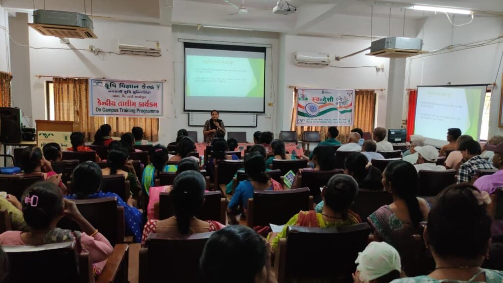 (પ્રતિનિધિ દ્વારા, વ્યારા) : તા. 23 :- તાપી જિલ્લામાં ગુજરાત પ્રાકૃતિક કૃષિ વિકાસ બોર્ડ દ્વારા વાલોડ અને ઉચ્છલ તાલુકાના સંયુક્ત ઉપક્રમે ‘નેશનલ મિશન ઓન નેચરલ ફાર્મિંગ’ અંતર્ગત પાનવાડી સ્થિત ‘કૃષિ વિજ્ઞાન કેન્દ્ર’ ખાતે શનિવારે વિશેષ તાલીમ શિબિર યોજાઈ હતી.