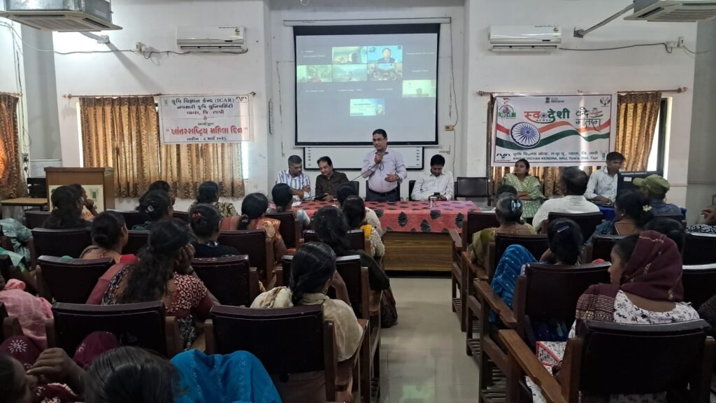 (પ્રતિનિધિ દ્વારા, વ્યારા) : ભારતીય કૃષિ અનુસંધાન પરિષદ (ICAR), નવી દિલ્હી દ્વારા પુરસ્કૃત અને નવસારી કૃષિ યુનિવર્સિટી, નવસારી દ્વારા સંચાલિત તાપી જિલ્લાનું એકમાત્ર કૃષિ વિજ્ઞાન કેન્દ્ર વ્યારા ખાતે કાર્યરત છે. આ કેંન્દ્ર ખાતે ૦૬ માર્ચ, ૨૦૨૬ ના રોજ નવસારી કૃષિ યુનિવર્સિટીના માન. કુલપતિશ્રી ડૉ. ટી. આર. અહલાવતની પ્રેરણા અને માન. વિસ્તરણ શિક્ષણ નિયામકશ્રી ડૉ. એચ. આર. શર્મા અને ડૉ. સી. ડી. પંડ્યા, વરિષ્ઠ વૈજ્ઞાનિક અને વડાના માર્ગદર્શન હેઠળ “પોસ્ટ બજેટ વેબિનાર” કાર્યક્રમ અને આંતરરાષ્ટ્રીય મહિલા દિવસની ઉજવણીના કાર્યક્રમનુ આયોજન કરવામા આવ્યુ હતુ. જેમાં તાપી જિલ્લાના કુલ ૨૦૦ થી વધુ ખેડૂતોએ ઉત્સાહભેર ભાગ લીધો હતો.