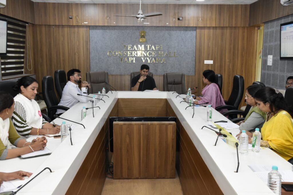 (પ્રતિનિધિ દ્વારા, વ્યારા) : તા. 11 :- તાપી જિલ્લા સેવા સદન ખાતે નિવાસી અધિક કલેક્ટર શ્રી આર. આર. બોરડના અધ્યક્ષસ્થાને જિલ્લામાં મહિલાઓના સશક્તિકરણ, સુરક્ષા અને સ્વાવલંબન માટે ચાલી રહેલી વિવિધ યોજનાઓનું અસરકારક અમલીકરણ કરવાના ઉમદા આશય સાથે ‘મિશન શક્તિ’ યોજના અંતર્ગત જિલ્લા ટાસ્ક ફોર્સ સમિતિની સમીક્ષા બેઠક યોજાઈ હતી.