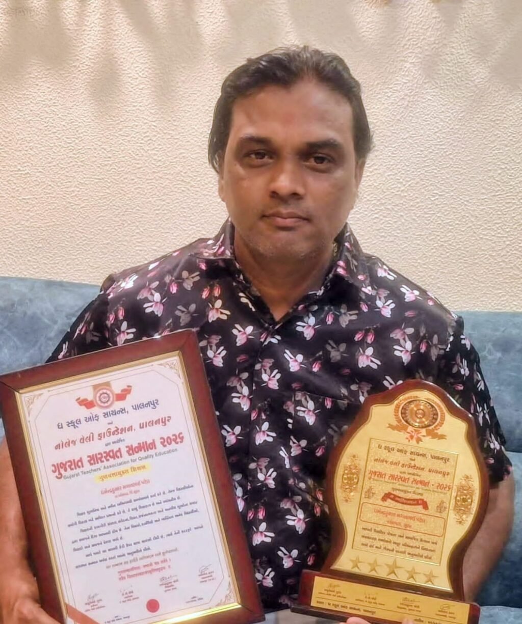 કોબા પ્રાથમિક શાળાનાં આચાર્ય ધર્મેન્દ્ર પટેલ ગુજરાત સારસ્વત સન્માન એવોર્ડથી સન્માનિત