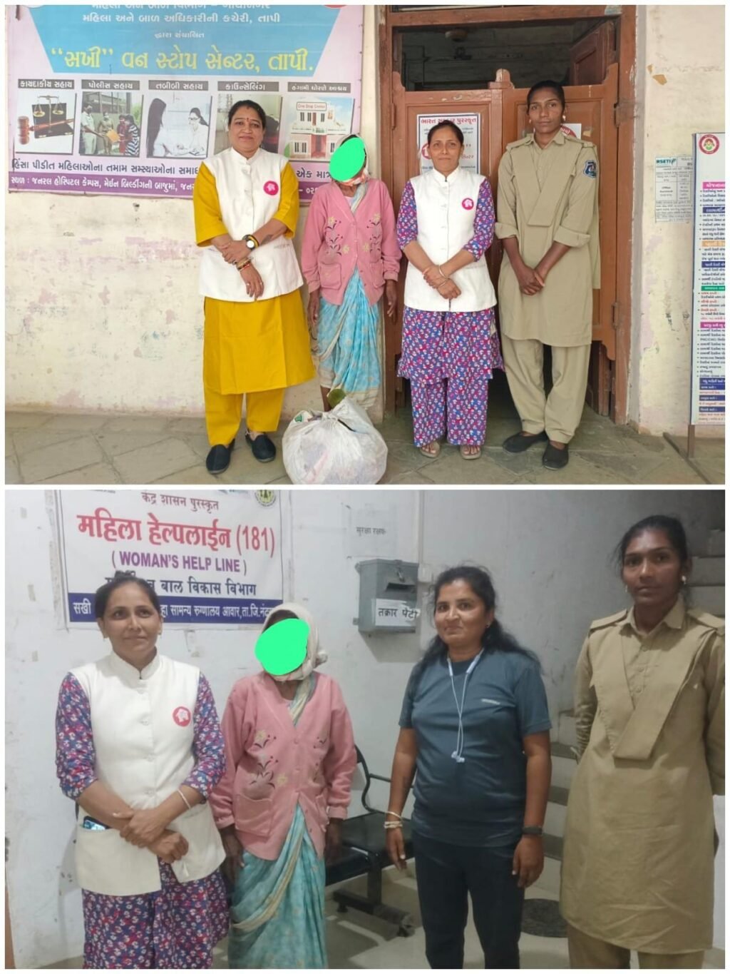 મળેલ વૃદ્ધાને 181 મહિલા હેલ્પલાઇન દ્વારા સખી વન સ્ટોપ સેન્ટર, તાપી ખાતે આશ્રય માટે લાવવામાં આવી હતી. મરાઠી ભાષા બોલતી આ વૃદ્ધાની ઓળખ શરૂઆતમાં મુશ્કેલ બની હતી, પરંતુ આધાર કાર્ડના આધારે તેમની ઓળખ સ્થાપિત કરવામાં આવી હતી.