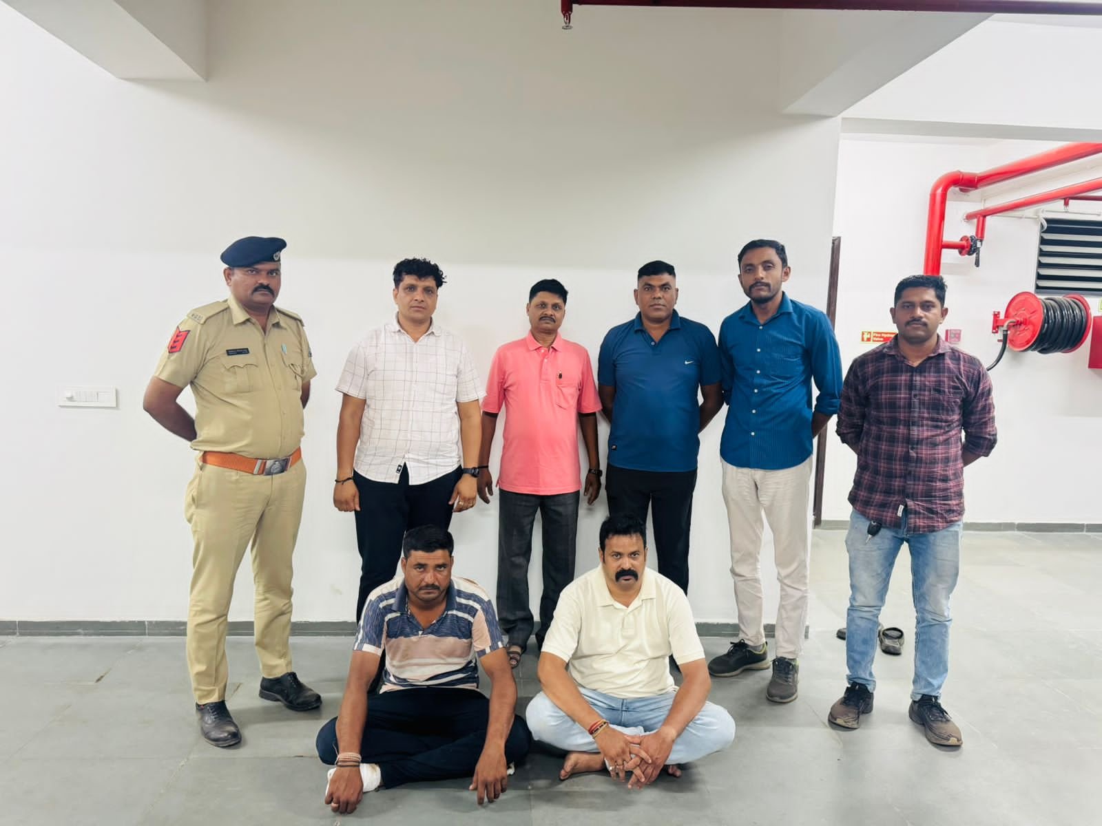 (૧) ઇગ્લીશદારૂના બાટલી/બીયર ટીન નંગ-૧૦૩૩ કુલ કિં.રૂ.૧,૬૬,૯૪૧/-, (૨) રોયલ સ્ટેગ ડીલક્ષ વ્હીસ્કી ૭૫૦ એમ.એલ.વાળી બનાવટી ઇગ્લીશદારૂ બનાવી કુલ્લે બાટલીઓ નંગ-૬૭ જે એક બાટલીની કિ.રૂ.૬૮૬ ગણી કુલ્લે નંગ-૬૭ બાટલીની કિ.રૂ.૪૫,૯૬૨ કુલ્લે લિટર ૫૦.૨૫૦ નો બનાવટી ઇગ્લીશદારૂ તેમજ અન્ય બે પ્લાસ્ટીકના કેનમાં ૧૦૫ લિટર બનાવટી ઇગ્લીશદારૂ કિ.રૂ.૧,૦૫,૦૦૦/-, (૩) રોયલ સ્ટેગ વ્હીસ્કીના સ્ટીકર તેમજ પ્રિન્ટેડ બુચ લગાડી તેનો સાચા તરીકે ઉપયોગ કરી પરપ્રાતીય બનાવટનો ઇગ્લીશદારૂ તેમજ બનાવટી ઇગ્લીશદારૂ કુલ્લે ૪૩૬.૧૯૦ લિટર કિ.રૂ.૩,૧૭,૯૦૩/- નો પ્રોહી મુદ્દામાલ, (૪) કાચની ખાલી બુચ અને સ્ટીકર વગરની બાટલીઓ ૭૫૦ એમ.એલ.વાળી ૪૬૩ નંગ, (૫) ખાલી બાટલીઓ ઉપર લગાડવા માટેના રોયલ સ્ટેગ લખેલા બુચ નંગ-૨૩૫, (૬) બાટલીને બુચ મારવાનુ હેન્ડ મેકર પ્રેશર મશીન નંગ-૧ જેની કિ.રૂ.૩૦૦૦/-, (૭) ઇગ્લીશદારૂ બાટલીમાં ભરવા માટેની પ્લાસ્ટીકની નાની મોટી ગરણી નંગ-૨ , (૮) પ્લાસ્ટીકની ડોલ નંગ-૧, (૯) લીલા કલરનો પ્લાસ્ટીકના પાઇપનો ટુકડો, (૧૦) ૨૦ લિટર કેપેસીટી વાળા ચાર નંગ પ્લાસ્ટીકની બોટલ, (૧૧) એક લોખંડનુ પેચ્યુ, એક લોખંડની છરી, એક બેરલ ખોલવા માટેનુ લોખંડનુ વાકિયુ, (૧૨) ૨૦૦ લિટરની કેપેસીટીવાળા પ્લાસ્ટીકના બેરલ/પીપ નંગ-૨ બન્ને પીપમાં ભરેલ પ્રવાહી મળી કુલ્લે ૨૦૦ લિટર સ્પીરીટ/આલ્કોહોલ કિ.રૂ.૩૦,૦૦૦/-, (૧૩) એક સિલ્વર કલરની એલ્યુમિનીયમની બોટલમાં આશરે ૫૦૦ એમ.એલ.જેટલુ એસેન્સ નામનુ કેમીકલ કિ.३.३०००/-, (૧૪) એક ૫ લિટરની કેપેસીટીવાળુ પ્લાસ્ટીકનુ કેનમાં ઇગ્લીશદારૂ બનાવવામાં કલર તરીકે ઉપયોગમાં લેવામાં આવતુ કેમીકલ આશરે ૪.૫ લિટરની કિ.રૂ.૪૫૦૦/-, (૧૫) મોબાઇલ નંગ-૨ કિ.રૂ.૬૦૦૦/-, (૧૬) બનાવટી ઇગ્લીશદારૂના સામાનની હેરફેર માટે ઉપયોગમાં લીધેલ આઇ.ટ્વેન્ટી કાર નં.GJ-05-CQ-6568 કિ.રૂ.૧,૫૦,૦૦૦/- કુલ્લે ૫,૧૪,૪૦૩/-ના મુદ્દામાલ સાથે